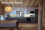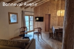 Ambiance montagnarde chaleureuse, parquets en chêne huilé, vieux bois et pierre, chauffage au sol.